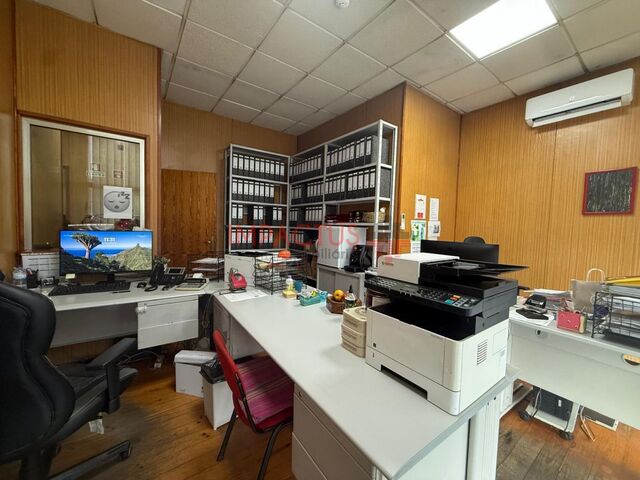 No 1.º piso, encontra-se uma zona administrativa bem estruturada, equipada com um WC, proporcionando um ambiente confortável e prático para tarefas de gestão e apoio às operações diárias.