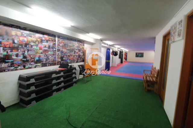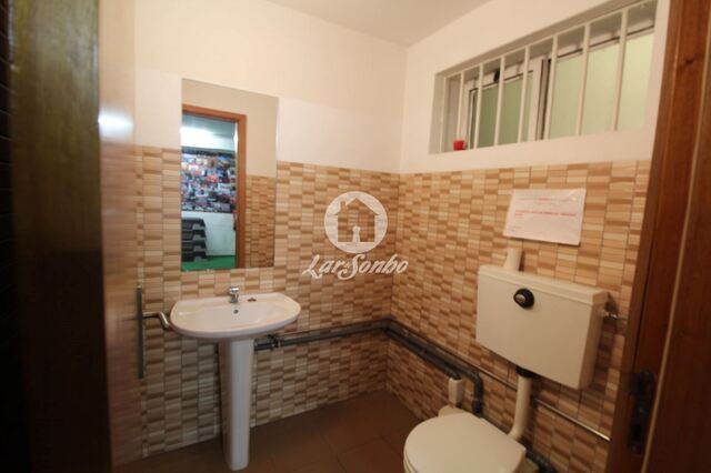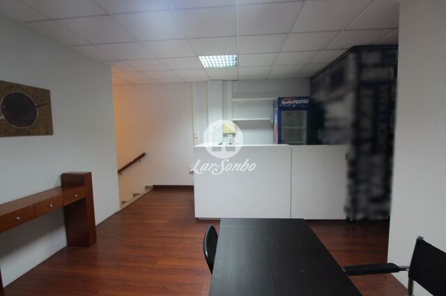 Dispõe de cave com salão de 150m2 e wc serviço, no r/c dispõe de 2 wcs completos e um salão, no 1º andar, 2 escritórios e bar.