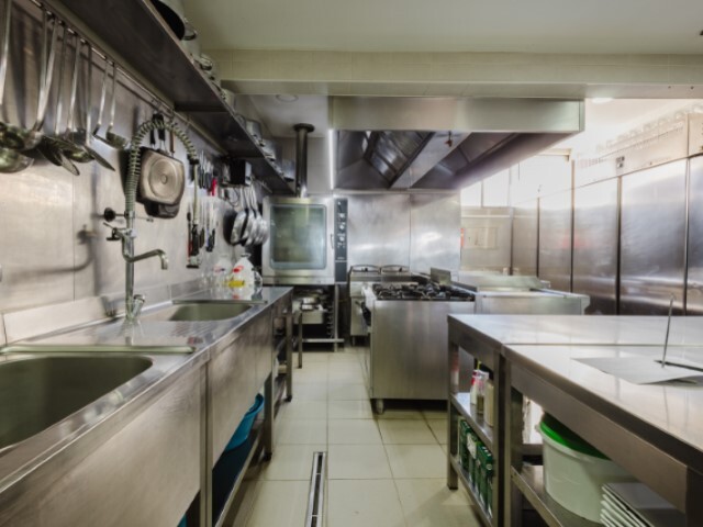 A cozinha remodelada recentemente e encontra-se totalmente equipada e pronta a funcionar (c/ arcas verticais e horizontais, exaustor, grelhador a gás, forno industrial, fritadeiras industriais, bancadas, zona isolada para lavagem de louças c/ máquina industrial).
