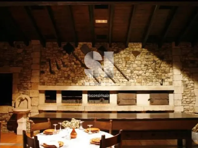 O piso inferior é composto por um bar típico totalmente equipado e com uma zona de estar/lazer reservada, uma sala ampla com acesso a um varandim generoso (ambos os espaços estão equipados com mesas e cadeiras em madeira maciça, para restauração), dois fornos tradicionais, três grelhadores embutidos e um lavabo em pedra. Dispõe ainda de cinco casas de banho sociais, uma suíte, uma cozinha totalmente equipada, uma arrecadação com uma área generosa e garagem.