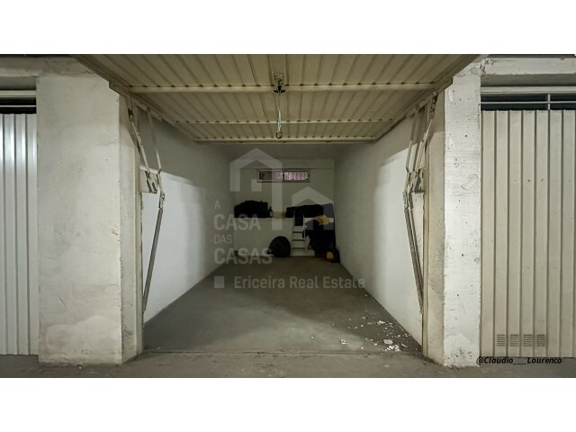 Garagem fechada, com cerca de 15 m², inserida em prédio junto ao centro da vila da Ericeira.