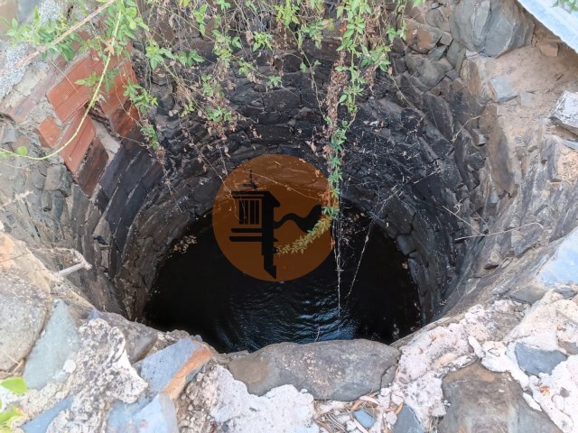 A quinta tem nora, depósito de água e um furo.