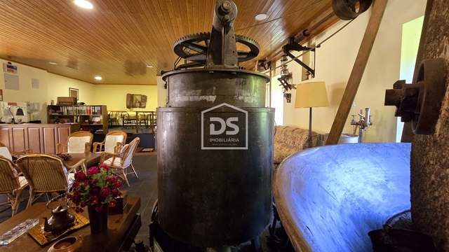 A recepção é incorporada num salão amplo com varias zonas de lazer, salas de estar, numa mistura  entre as máquinas originais do Lagar e do moínho, e o calor do recuperador a lenha.