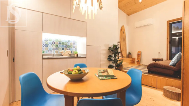- Sete casas de madeira (suspensas ou tipo bungalow) com capacidade para 4 a 6 pessoas, equipadas com kitchenette, casa de banho, ar-condicionado, sendo algumas adaptadas para pessoas com mobilidade reduzida.