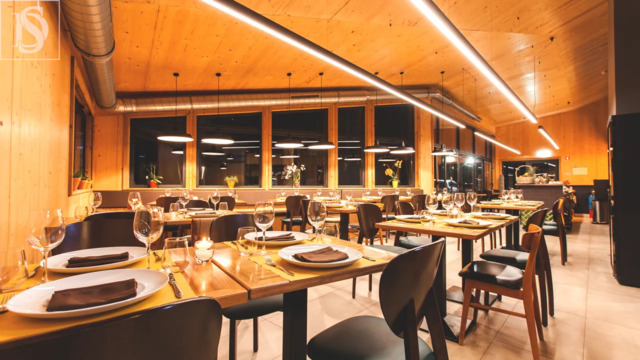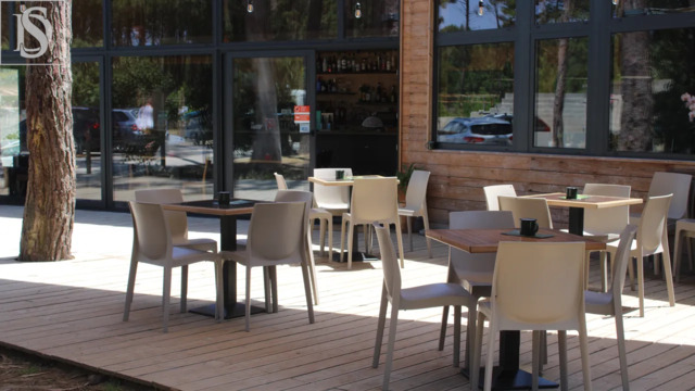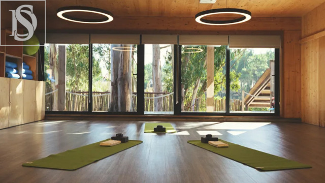 - Um edifício principal com receção/loja, espaço multiuso, WC, e restaurante/bar com esplanada no rés-do-chão. Sauna, salas de massagem, WC e terraço no primeiro andar.