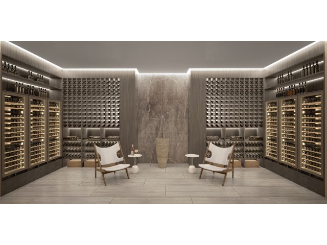 Piso inferior com spa, ginásio, adega, sala de TV e área de garagem para veículos