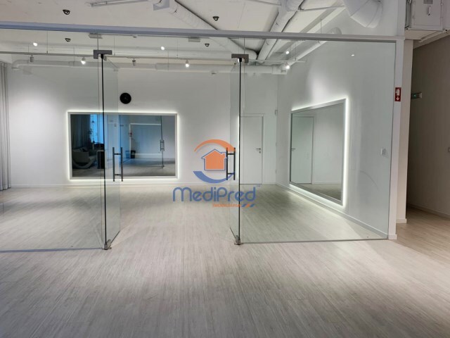 Atualmente, é composta por uma área em open space, receção/entrada de loja com separação em vidro, uma divisória (também em vidro) que forma uma sala, uma zona de arrumos e, ainda, uma casa de banho.