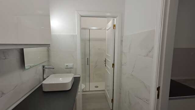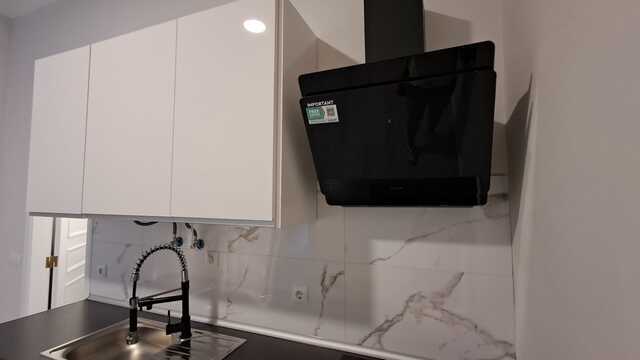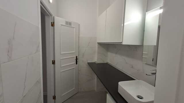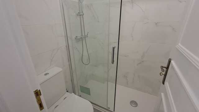 Loja transformada em apartamento T1 composto por sala e cozinha em open-space + um quarto interior e WC completo, com 88m2 de área util.