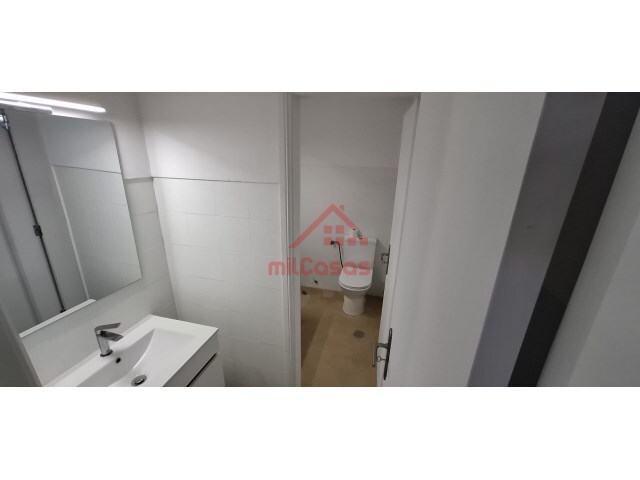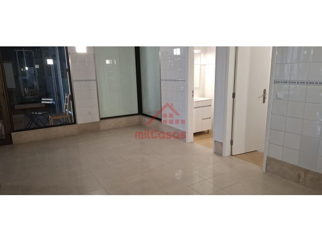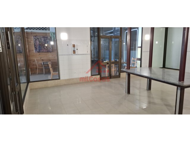 Loja ampla, com duas entradas ao nível de rés do chão e outra pela garagem/box privativa, dispõe de uma casa de banho e uma zona de arrumos.
