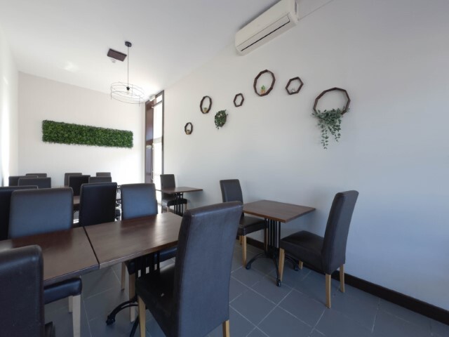 Estabelecimento comercial licenciado para restauração, composto por uma ampla sala com dois WC, com 93 m² de área coberta e 146,9 m² de área descoberta. Dispõe ainda de uma cave com 74,4 m².