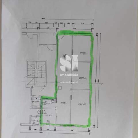 Área de Circulação: A loja possui uma ampla área de circulação, que conecta os gabinetes e as casas de banho. Este espaço pode ser utilizado para a receção de clientes, como sala de espera, ou como área comum para colaboradores. A disposição é fluida, permitindo um fácil acesso a todas as áreas da loja.
