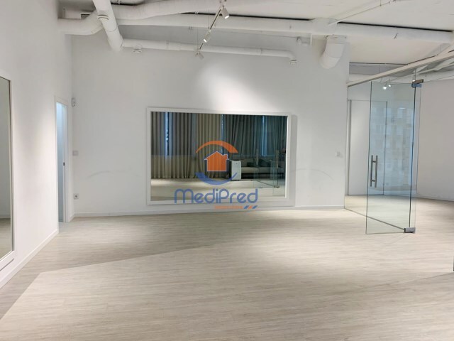Atualmente, é composta por uma área em open space, receção/entrada de loja com separação em vidro, uma divisória (também em vidro) que forma uma sala, uma zona de arrumos e, ainda, uma casa de banho.