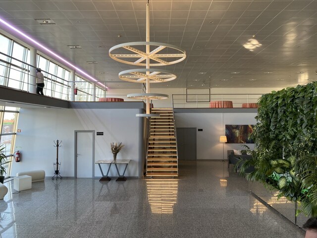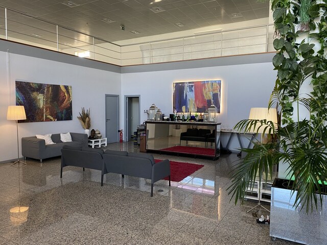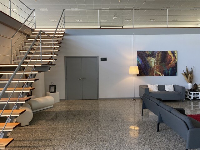 Inserido numa nave de 800 m2 com mezzanine e salas dimensionáveis. No seu interior encontramos dois pisos, num total de 1200 m2 de área útil.
