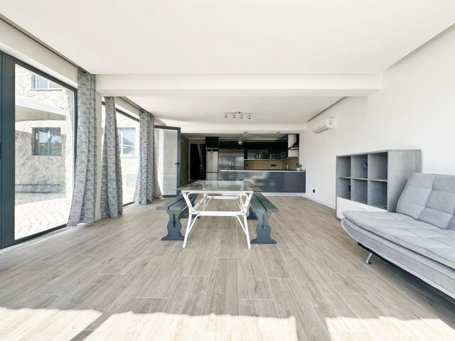 No piso térreo, encontramos uma sala ampla e luminosa, ideal para momentos em família ou para receber amigos, em open space com a cozinha americana moderna, equipada com placa vitrocerâmica, forno, exaustor, termoacumulador, frigorífico e máquinas de lavar roupa e loiça, num total de 45 m² de área útil. Ainda neste piso, um hall de circulação com escada em madeira dá acesso ao andar superior. A zona privada oferece um quarto em suíte com 19 m² e mais um quarto com boa área, além de uma casa de banho social com 4m², preparada para instalação de base de duche.