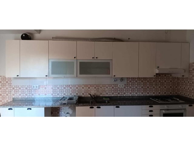 Cozinha equipada com fogão, forno, exaustor e esquentador a gás