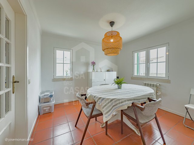 O interior distribui-se em dois pisos, com zonas amplas e versáteis. A área social conta com sala de estar com recuperador de calor, cozinha, zona de jantar e duas divisões extra com janela perfeitos para arrumos, estúdios criativos ou home office. No piso superior, três quartos com roupeiros e um quarto adicional (resultado da conversão da garagem) garantem conforto para toda a família, hóspedes ou alojamento local.