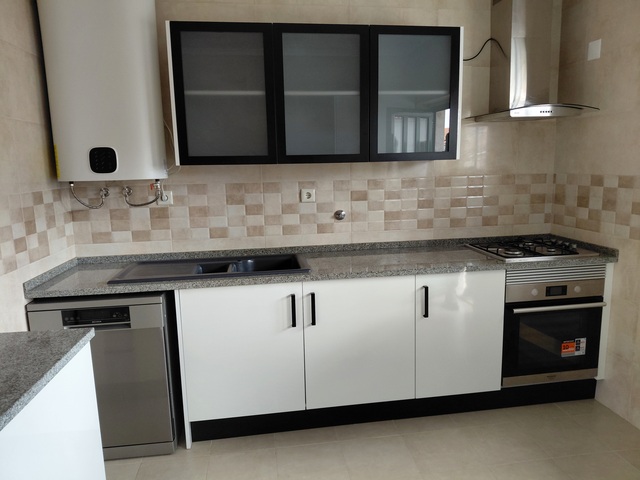 Cozinha com 10 m2, equipada com Fogão e forno, frigorífico, máquina de lavar louça, exaustor, caldeira,dispenseiro, marquise
