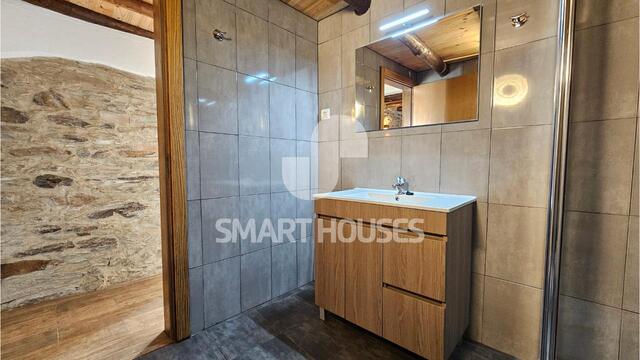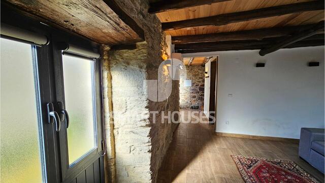 - No rés-chão, através da porta principal, acede-se directamente ao hall de escadas/corredor que dá acesso a sala de leitura, ao quarto e ao W.C. completo e espaçoso com base de duche;