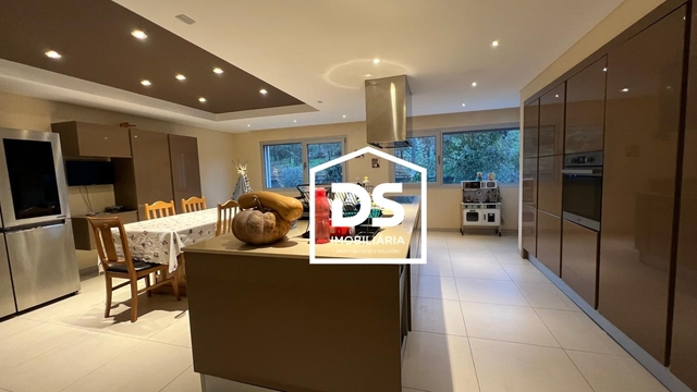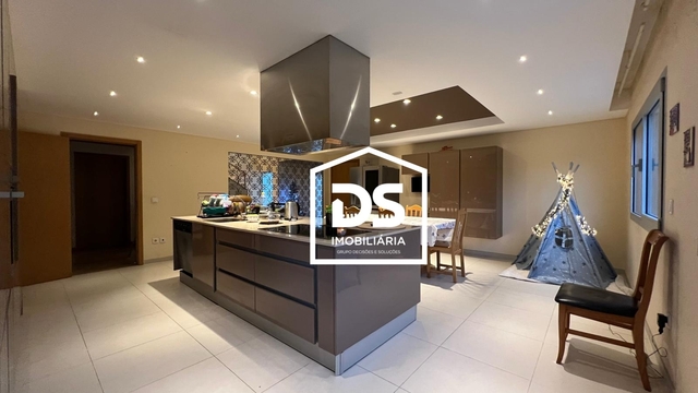 - Cozinha espaçosa mobilada e equipada com placa vitrocerâmica, forno, exaustor em campânula e frigorífico americano, com ilha, com bancada em Silestone e com uma mesa para 6/8 pessoas.