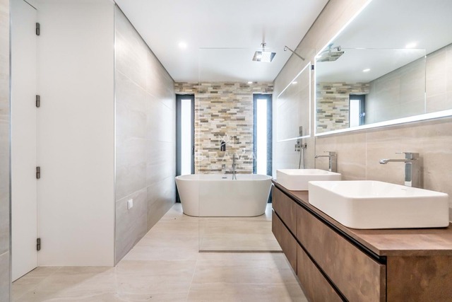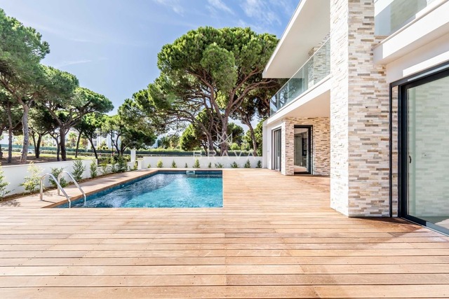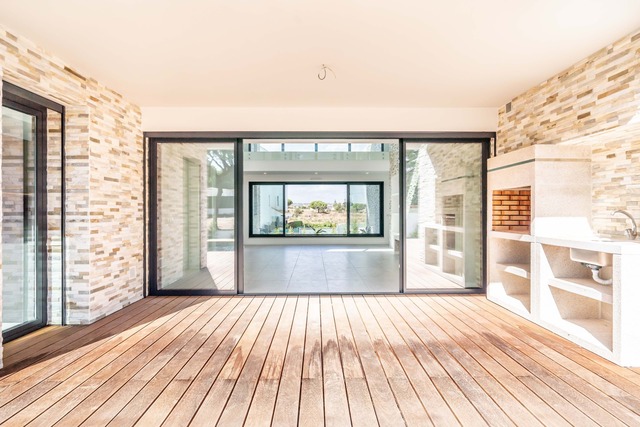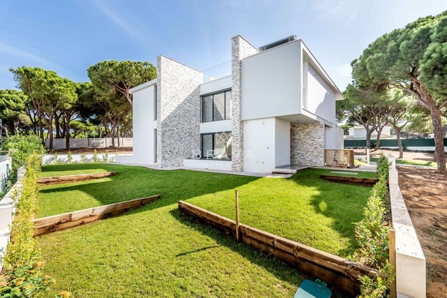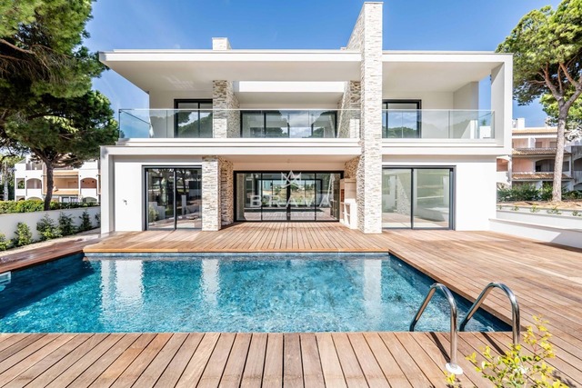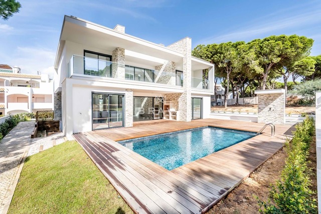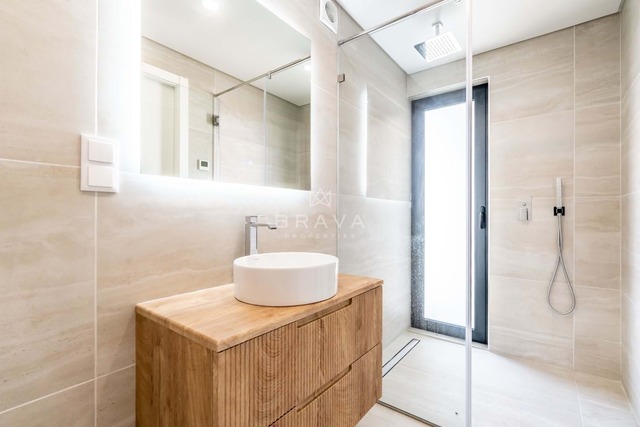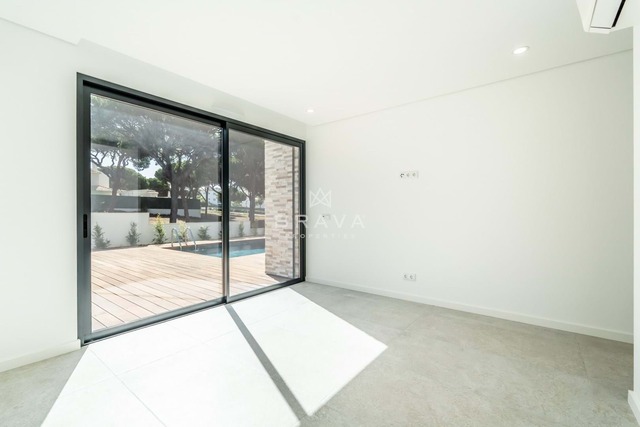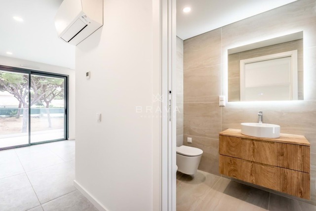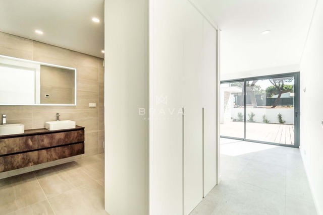 Moradia T3 recente na zona da Falésia, em Albufeira, com construção de 2021 e acabamentos de alta qualidade. Distribui-se por três pisos cave, rés-do-chão e primeiro andar com piso radiante, ar condicionado e aspiração central.