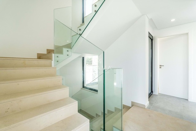 No primeiro piso encontram-se duas suites com roupeiros embutidos, estores elétricos e terraços com vista.
