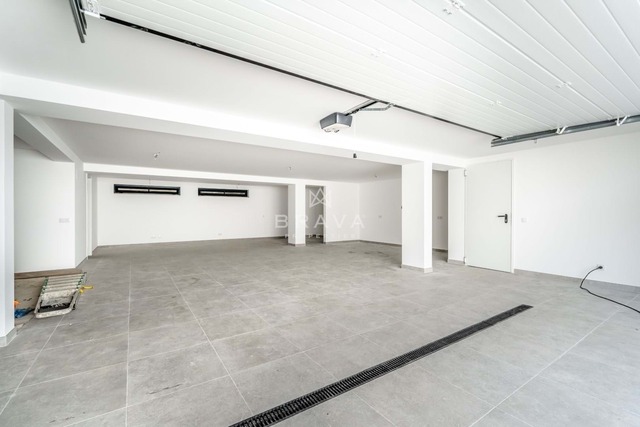 A cave permite estacionamento para vários carros, com lavandaria e zona técnica.