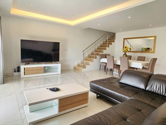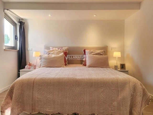 A moradia com prestações de qualidade, geminada com 3 frentes, beneficia no Rés-do-chão de uma espaçosa sala de estar e sala de jantar com acesso ao jardim, uma cozinha moderna totalemente mobilada e equipada, assim como um quarto suite e roupeiro embutido, também com acesso ao jardim.