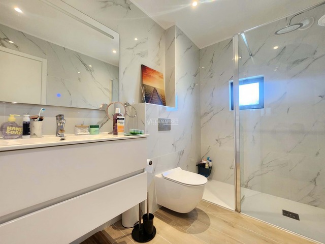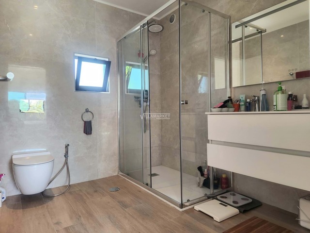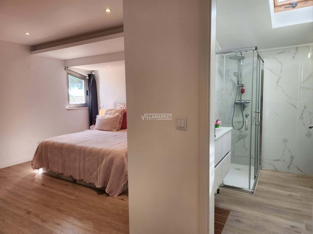 No 1°andar, 2 quartos-suite com roupeiros embutidos e casas de banho com base de duche.