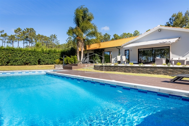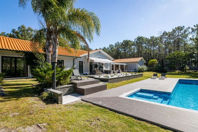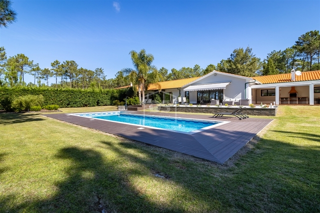 Situada numa das zonas mais tranquilas e privilegiadas da Costa Oeste de Portugal, esta magnífica moradia térrea oferece uma combinação única de conforto, privacidade e proximidade das belezas naturais e culturais da região. Localizada no coração do Pinhal do Rei, a maior mancha de pinheiro bravo da Península Ibérica, esta propriedade de luxo apresenta um estilo de vida inigualável, onde a natureza e a sofisticação se encontram.