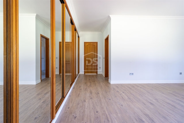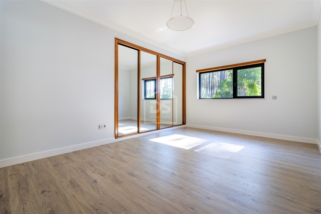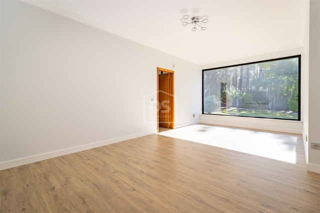 A ampla sala de estar é o coração da moradia, oferecendo um ambiente acolhedor e sofisticado, perfeito para momentos de lazer e convivência. Ao lado, encontra-se o salão de refeições, que é ideal para jantares em família ou receções a amigos. A cozinha, igualmente espaçosa e moderna, está totalmente equipada, e é complementada por uma lavandaria para maior comodidade.