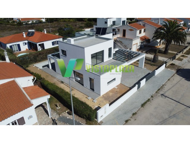 Descubra esta moradia isolada, nova, com vista mar e piscina, localizada na tranquila zona do Espartal, Arrifana - Aljezur. Com 165m² de área útil e inserida num lote de 460m², esta propriedade oferece três quartos em suíte (um no rés-do-chão e dois no 1.º andar), uma casa de banho de serviço e duas varandas, além de um terraço no topo com vista desafogada.