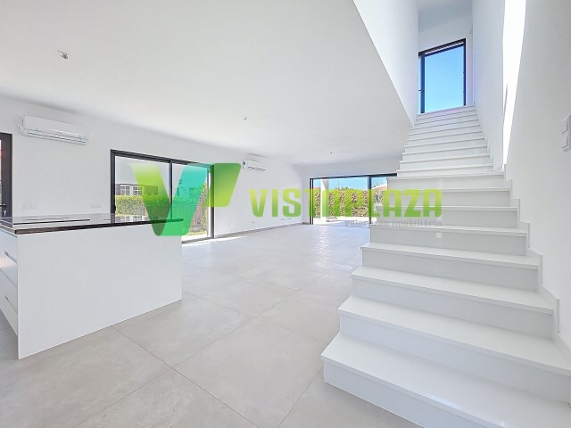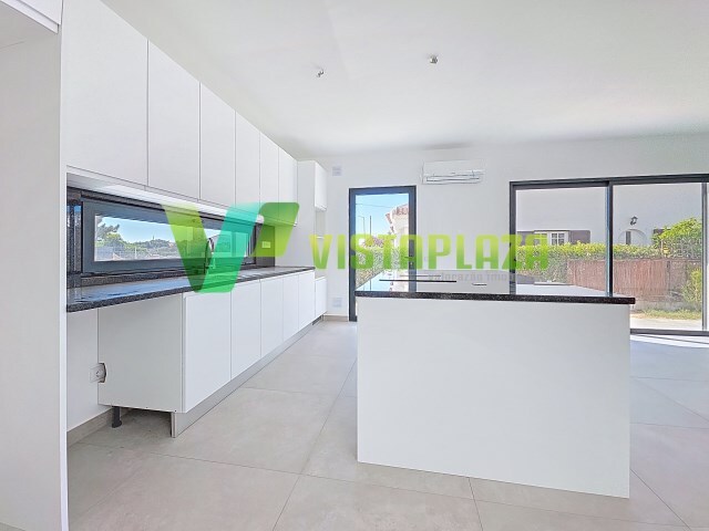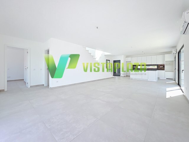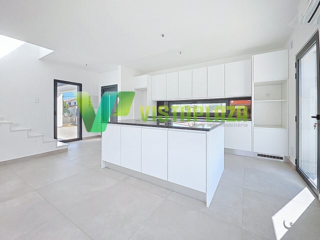 A moradia apresenta acabamentos de excelente qualidade, chão com aquecimento, ar-condicionado em todas as divisões, roupeiros embutidos, estores elétricos e painéis solares. A cozinha é semi-equipada e há ainda um carport com capacidade para dois carros.