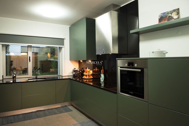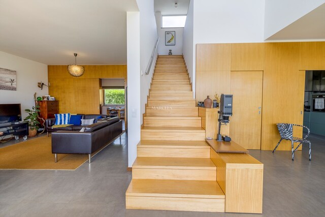 A entrada desta moradia acolhe-o com uma sala de estar e sala de jantar conectadas, inundadas pela luz natural que entra pelas janelas que se abrem para o terraço exterior. A cozinha moderna está integrada com uma área de lazer, proporcionando o espaço perfeito para reuniões familiares ou entre amigos. Este piso também inclui um escritório para trabalhar em casa, uma lavandaria conveniente, um WC adicional e acesso à escadaria para o piso superior.
