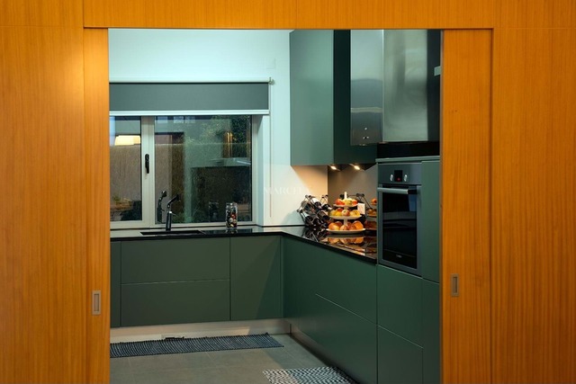 A entrada desta moradia acolhe-o com uma sala de estar e sala de jantar conectadas, inundadas pela luz natural que entra pelas janelas que se abrem para o terraço exterior. A cozinha moderna está integrada com uma área de lazer, proporcionando o espaço perfeito para reuniões familiares ou entre amigos. Este piso também inclui um escritório para trabalhar em casa, uma lavandaria conveniente, um WC adicional e acesso à escadaria para o piso superior.