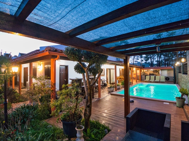 Esta propriedade na Aroeira distingue-se pela sua versatilidade, dimensão e potencial, combinando habitação, lazer e espaço comercial no mesmo imóvel. A moradia desenvolve-se em dois pisos, com uma área útil de 245 m², implantada num terreno de 630 m². Dispõe de quatro quartos e três casas de banho, todas com poliban, oferecendo conforto e funcionalidade para uma família ou projeto de alojamento. As janelas do primeiro piso mantêm o charme das portadas de madeira, enquanto o segundo piso beneficia de caixilharia em PVC com vidro duplo, garantindo melhor isolamento térmico e acústico. A zona social foi pensada em open space, integrando sala e cozinha, criando um ambiente amplo e moderno. A cozinha encontra-se equipada e inclui um forno a lenha, um elemento diferenciador que acrescenta carácter e potencial gastronómico. A moradia é vendida mobilada e equipada, pronta a ser utilizada sem necessidade de investimento imediato. No exterior, o espaço foi concebido para lazer e convívio. A piscina aquecida e salgada, com repuxo e jogo de luzes, cria um ambiente atrativo durante todo o ano, apoiada por uma casa de banho dedicada e um anexo com grelhador, ideal para momentos sociais e eventos. O imóvel integra ainda um restaurante com bar, equipado e preparado para utilização, incluindo mesas interiores e de esplanada, loiças, fornos, arcas frigoríficas e diversos equipamentos de hotelaria. Este espaço abre portas a um projeto de restauração, exploração comercial ou reposicionamento para outro conceito de negócio. Trata-se de um imóvel raro na zona, com múltiplas possibilidades de utilização: habitação própria, investimento turístico, exploração comercial ou modelo híbrido que combine vida pessoal e rendimento. Situado numa zona residencial tranquila e em crescimento, com fácil acesso a uma vasta oferta de comércio, serviços e infraestruturas essenciais. Nas proximidades encontra supermercados, farmácias, escolas, restauração, bancos e unidades de saúde, garantindo comodidade no dia a dia. A localização beneficia de bons acessos rodoviários, permitindo ligações rápidas à Costa da Caparica, Almada e Lisboa, tornando-se uma opção prática tanto para residência permanente como para investimento. A zona conta ainda com transportes públicos regulares, facilitando deslocações sem necessidade de viatura própria. A proximidade às praias da Fonte da Telha e Costa da Caparica, espaços verdes e zonas de lazer acrescenta qualidade de vida, combinando ambiente residencial com conveniência urbana.