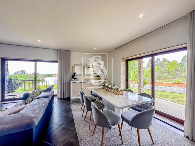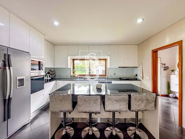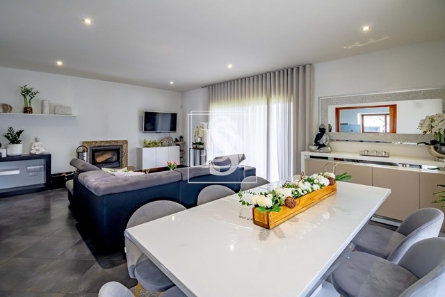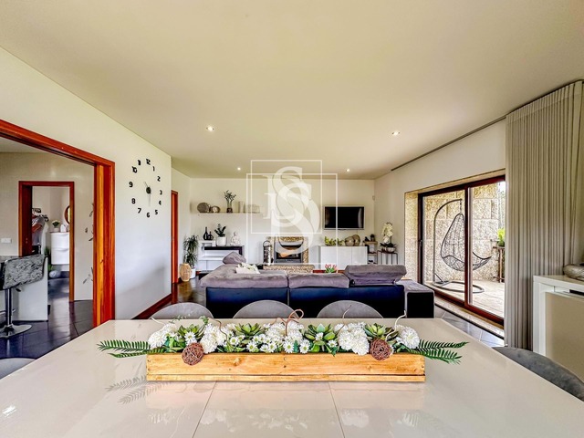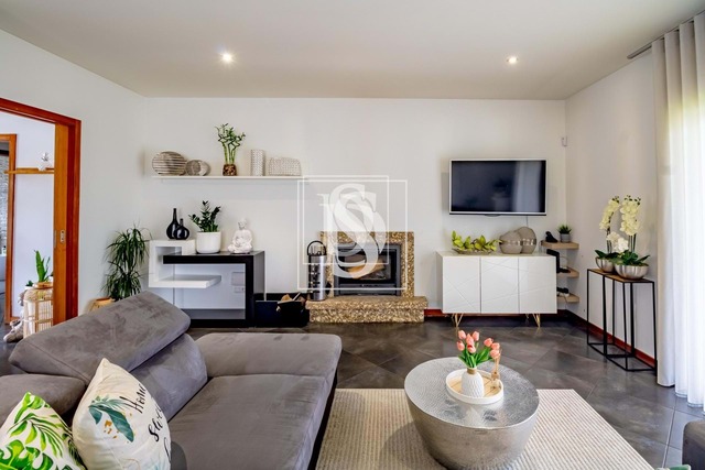 Os interiores modernos e luminosos contam com roupeiros embutidos, cozinha equipada com eletrodomésticos de alta qualidade, e uma lareira com recuperador de calor na sala de estar. Além disso, a propriedade oferece vistas espetaculares para o campo e para a montanha, garantindo uma sensação de paz e relaxamento.