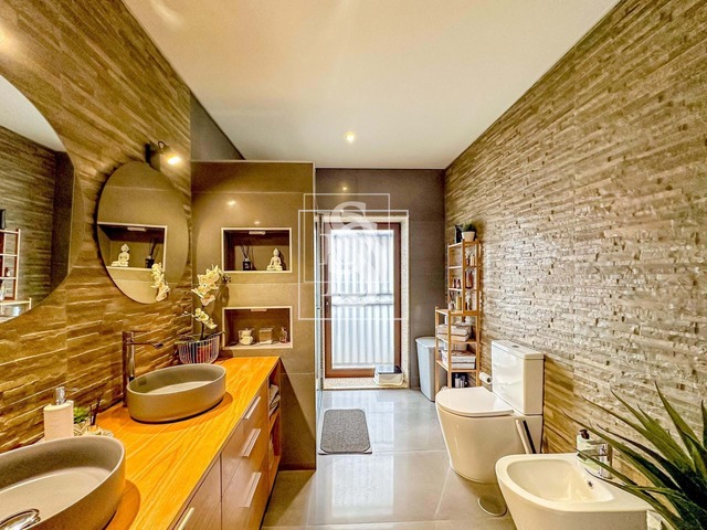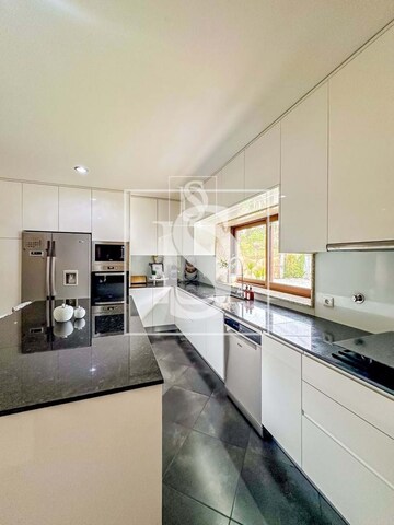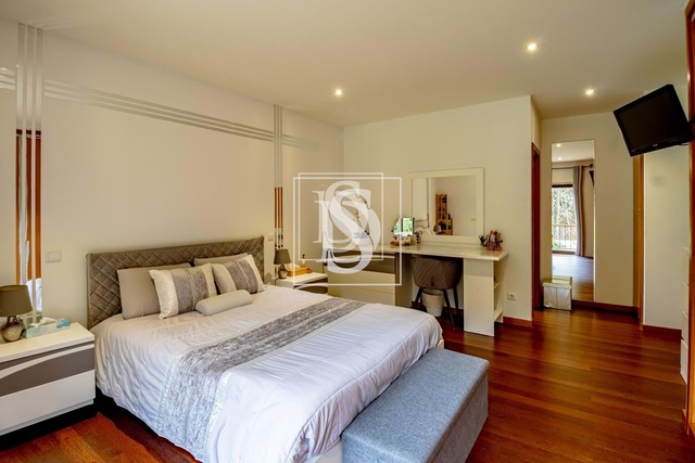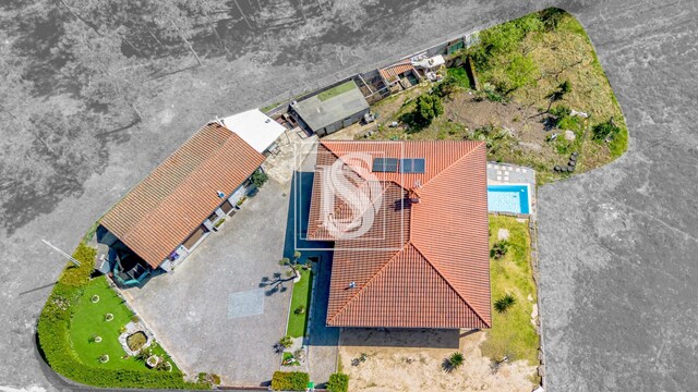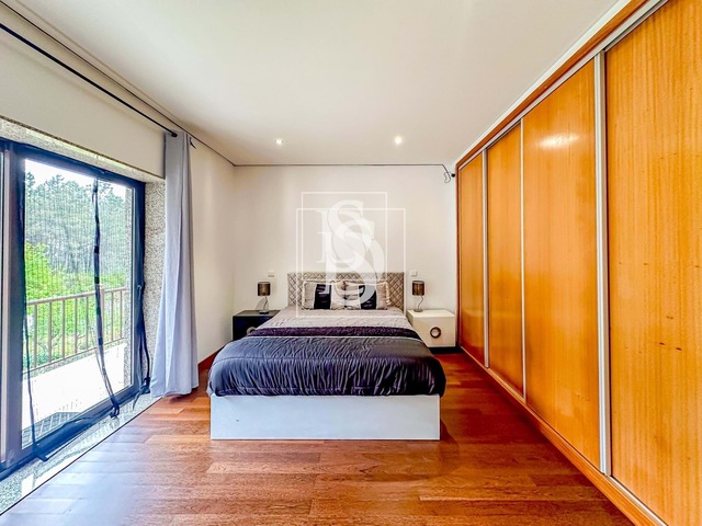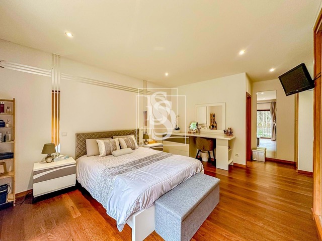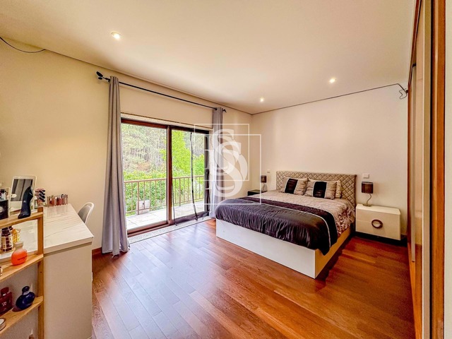 O exterior é um verdadeiro oásis, com um jardim bem cuidado, piscina ideal para os dias de verão, um terraço perfeito para refeições ao ar livre, e um belíssimo jardim com lago. Além disso conta com garagem, uma área de anexos, dispõe de um furo de água, sistema de alarme de segurança, portões elétricos e churrasqueira.