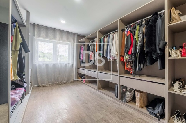 No piso superior dispõe de dois quartos com roupeiros embutidos e uma confortável suíte com banheira privativa e varanda, oferecendo maior privacidade e comodidade.