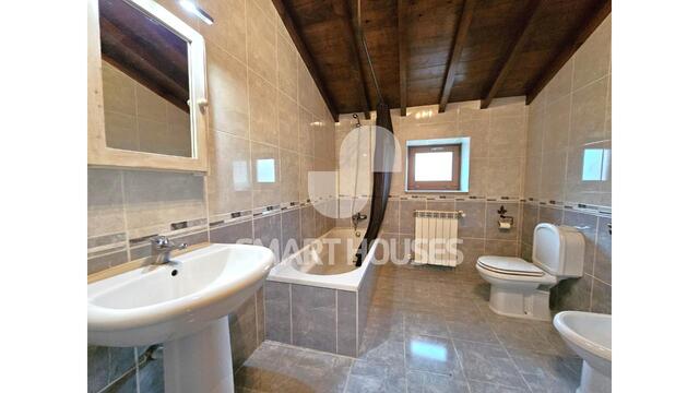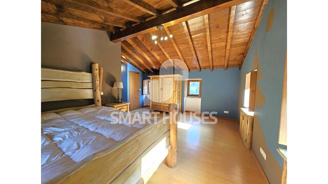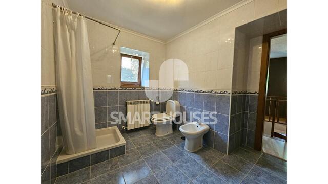 - Aquecimento: sistema central com radiadores em todos os quartos, melhorados por refletores que aumentam a eficiência em 45%, uma caldeira a pellets com programações automáticas localizada em área externa; tem salamandra a lenha na sala, de design moderno, que aquece facilmente os dois andares superiores.