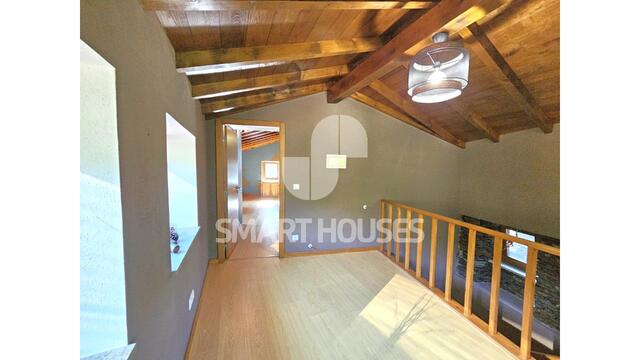 - Piso superior: ao qual se acede pelo hall de entrada através de escadaria, tem uma sala de leitura logo no cimo das escadas, com muita luz natural, e daqui acede-se ao quarto principal, com W.C. privativo.