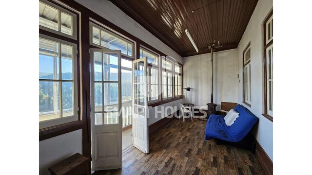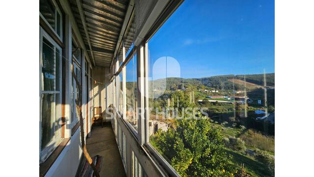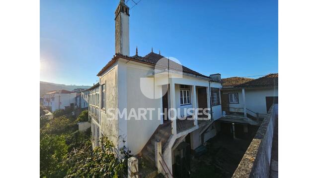Moradia T4 + T2 em torno de pátio interior na vila de Pombeiro da Beira, com terreno e anexos.