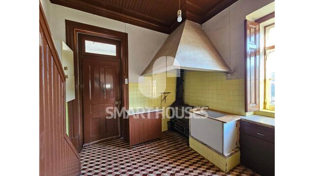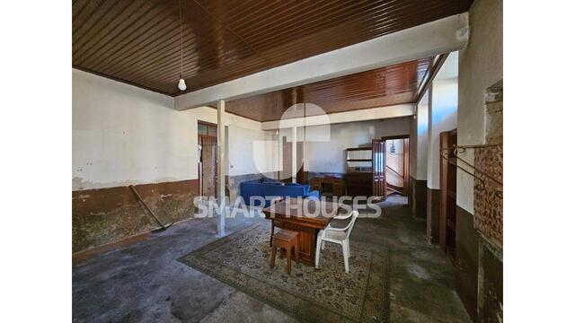 - piso térreo tem 1 grande loja inteiramente voltada para a rua principal, espaço amplo antigamente destinado a comércio. Desta sala acede-se a mais 2 arrumos, a 1 escritório com vistas sobre o terreno e a 1 cozinha, com acesso directo ao pátio interior.