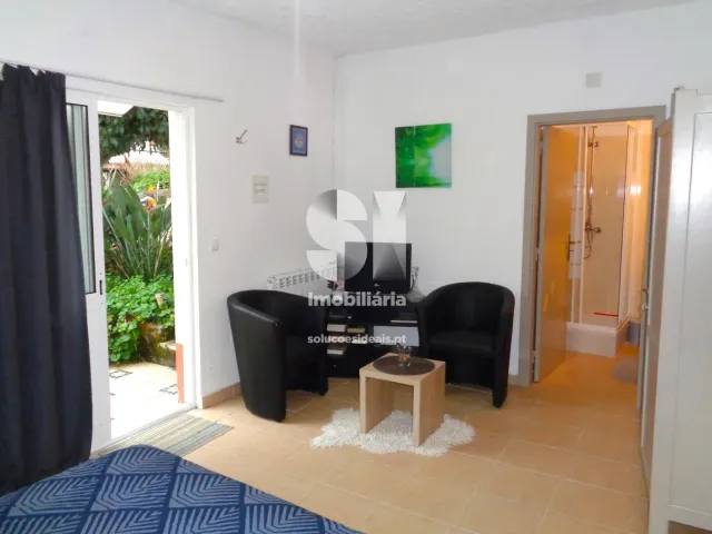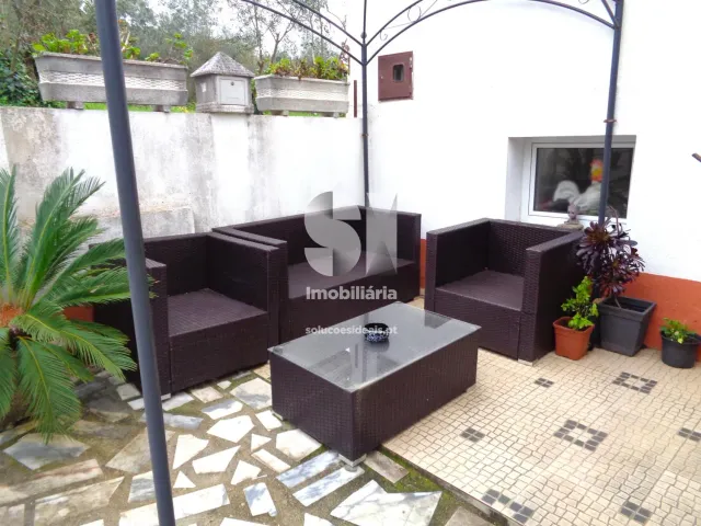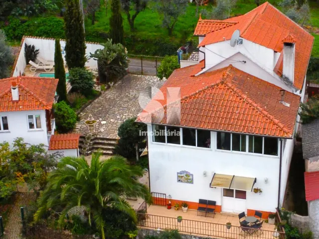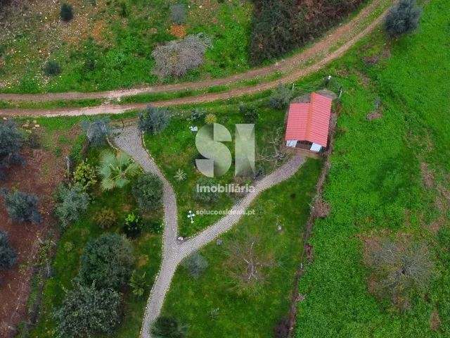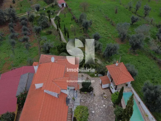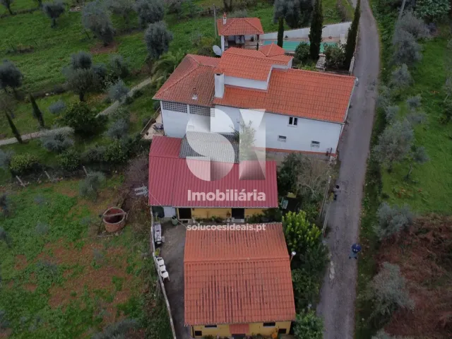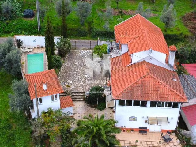 No exterior, a propriedade conta com uma simpática piscina, uma agradável churrasqueira e um jardim espaçoso com mais de 1500 metros quadrados, com várias árvores de fruto. Além disso, existe uma casa de apoio.