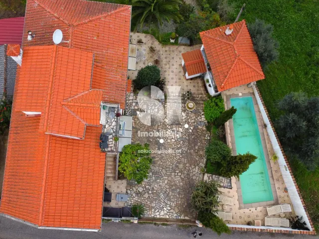 No piso inferior, encontram-se duas suítes com entradas independentes que partilham uma varanda comum, uma arrecadação dedicada ao aquecimento central a pellets e uma área transformada em dois quartos e um hall de dimensões razoáveis.