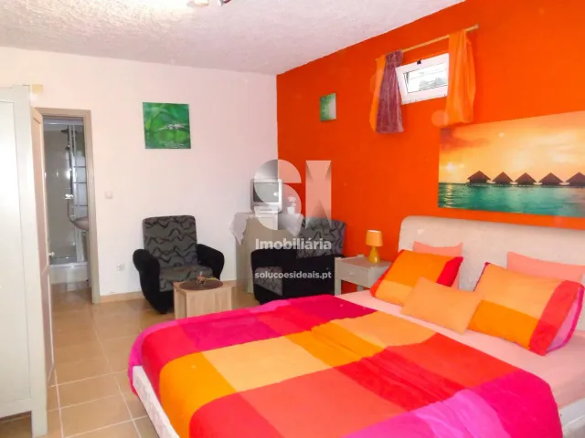 No mezanino, encontra-se uma cama de casal e um armário embutido tendo ainda uma pequena varanda.