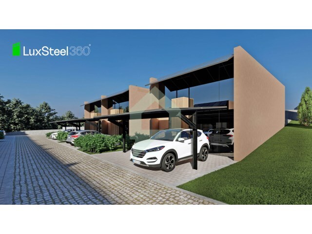 Cada fração possui dois lugares privativos de estacionamento carral sob pérgola, que pode ser facilmente convertido numa extensão da zona social, adaptando-se às necessidades dos utilizadores.