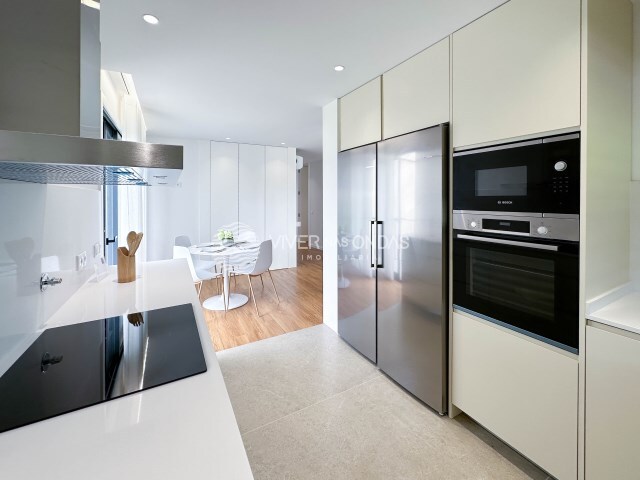 - Cozinha mobilada e totalmente equipada com eletrodomésticos Bosch (forno, placa, microondas, chaminé, frigorífico, congelador e máquina de lavar louça);