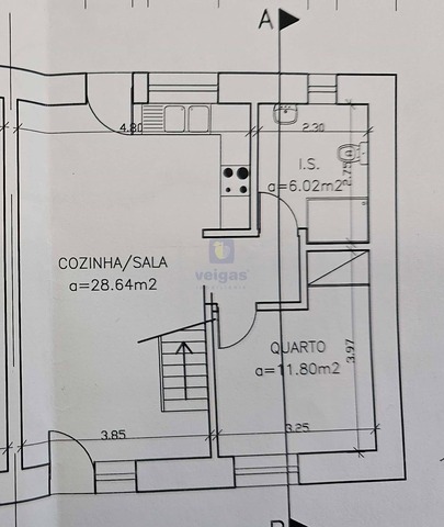 Distribuída em 2 pisos, no piso 0 temos um open space de cozinha e sala com uma área de 36m2, uma casa de banho generosa com 5m2 e iluminação natural facultada pela sua janela.