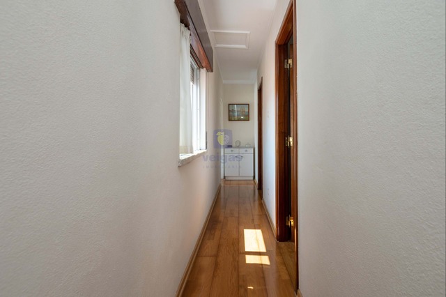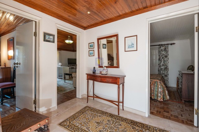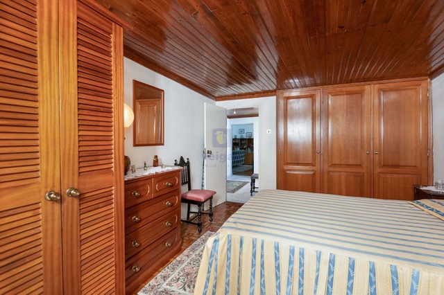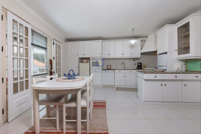 No piso térreo dispõe de duas salas, uma delas de refeição e de estar com lareira e a outra somente sala de estar/biblioteca. Ainda conta com dois quartos e uma grande casa de banho. A cozinha é branca, ampla e com uma grande marquise que confere grande luminosidade a todo o espaço envolvente!