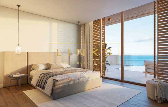 Os espaços interiores destacam-se pela amplitude, luminosidade e elegância. A sala de estar, a sala de jantar e a cozinha comunicam entre si de forma fluida, num ambiente moderno e acolhedor. A cozinha, equipada com uma ilha de design contemporâneo e materiais premium, torna-se o coração da casa, enquanto a sala de estar, com janelas panorâmicas, enquadra a imensidão do mar como se fosse uma obra de arte viva.